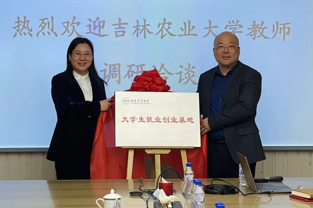 座谈后,董雅致为百克生物在生命科学学院担任专业硕士研究生导师代表颁发了聘书;与公司常务副总经理姜春来共同为吉林农业大学“大学生就业创业基地”揭牌。走访调研期间,董雅致看望了学校在企业工作的校友,参观了企业研发和生产车间。