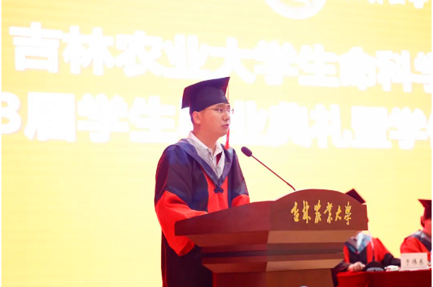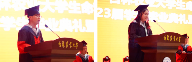 2023届优秀博士毕业生苟泽昌、优秀本科毕业生朱俐铭代表毕业生发言,他们在发言中分享了在吉农生科的成长收获以及对校院和老师们的感激之情。