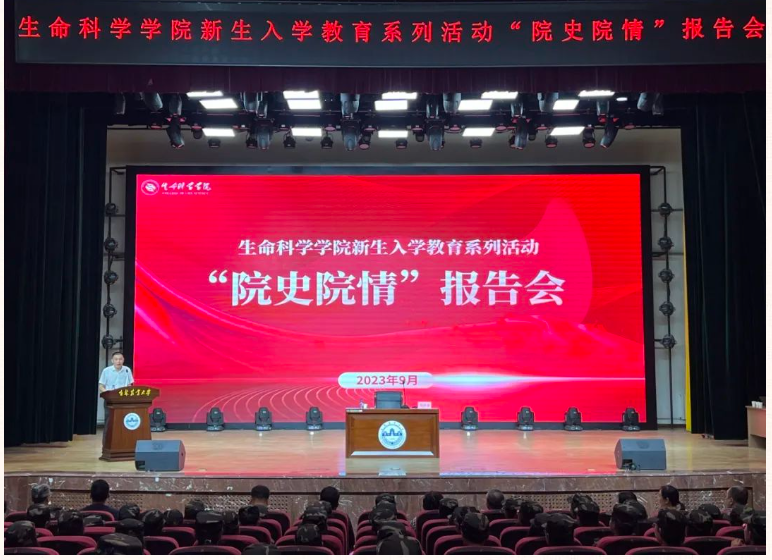 为引导学院2023级本硕博新生尽快适应大学生活,了解院史院情、专业特点、发展方向,增强同学们对学院的认同感和归属感。9月14日,学院联合学校关工委于鲲鹏学生文化活动中心举办了生命科学学院新生入学教育系列活动——院史院情报告会。